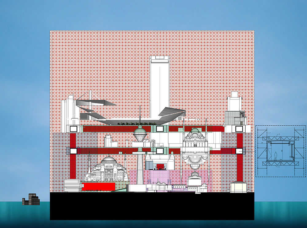 Jenerik Ada projesi, İstanbul’da inşaatı devam eden 3. Havalimanı’nın hemen yanında kurgulandı. Hedef kitlesi havalimanına gelen turistler olmak üzere halka açık, 500x500m’lik bir plana sahip bir tema ada olarak tasarlandı. Ada, adını ve kurgusunu Rem Koolhaas’ın 1995 yılında yayınladığı “Generic City” makalesi üzerinden tanımlıyor. Kitle turizminin talep ettiği bütün imgeselliği bünyesinde barındırıyor. Adada; turizm şirketlerinin çizdikleri gezi rotalarının uğradığı noktalardaki görece simge yapıları; eğlence, kültür, yemek ve alışveriş merkezlerine dönüştürülmüş tarihi yapılar ve sadece konaklamak isteyenler için otelleri bulabilmek mümkün. Adadaki tüm yapılar orijinallerinin birebir ölçülerindeki replikalar. Bu röprodüksiyonlar orijinallerinden malzeme ve işlev farkı ile ayrılıyor. Adada bulunan bütün yapılar aynı malzemeden üretildi ve yer yer ana taşıyıcı görevini üstlenirken yer yer de dolaşım mekanları olarak konumlanıyorlar.
